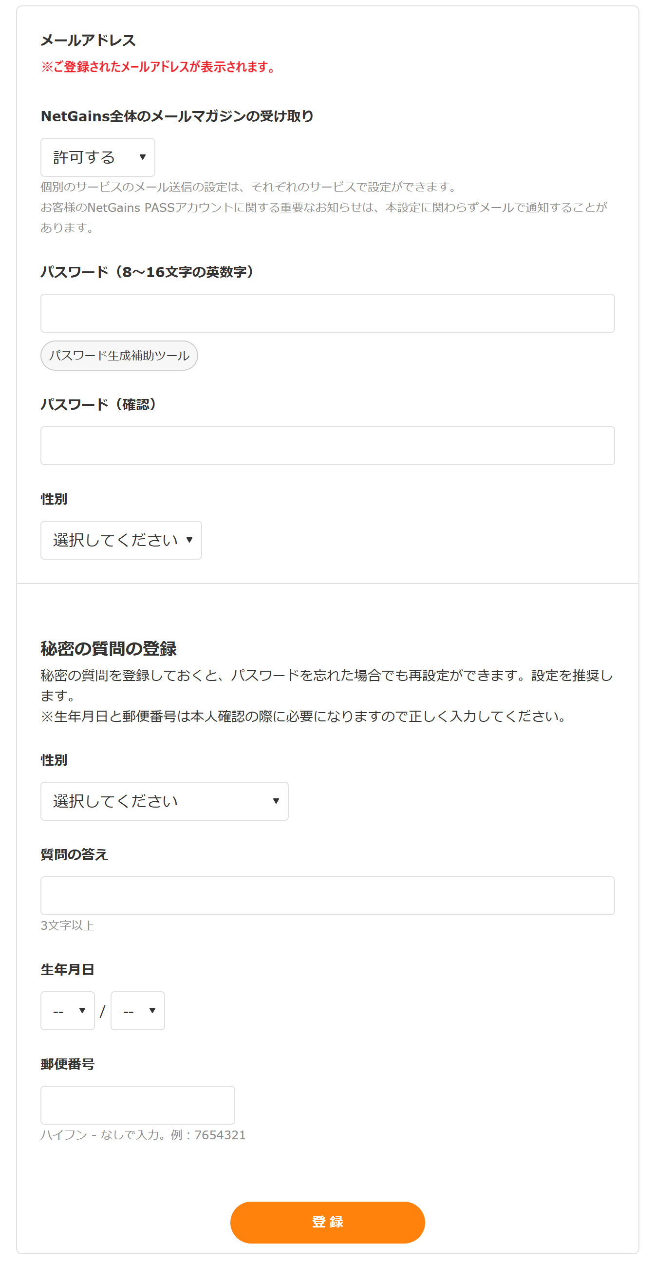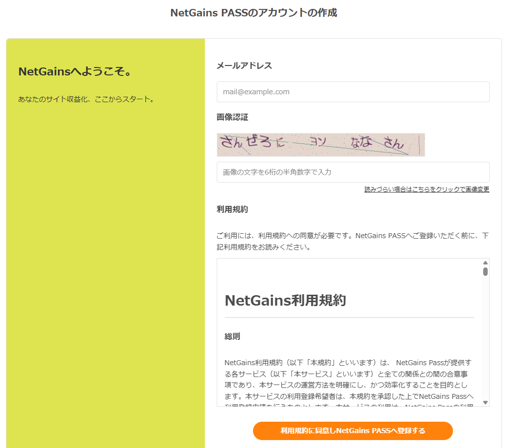 「利用規約に同意しNetGains PASSへ登録する」ボタンをクリックしてください。