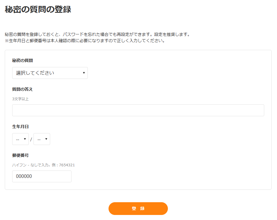 スマートフォン版を表示 »秘密の質問は登録メールアドレスが使用できなくなり、パスワードの再設定が行えない際に、